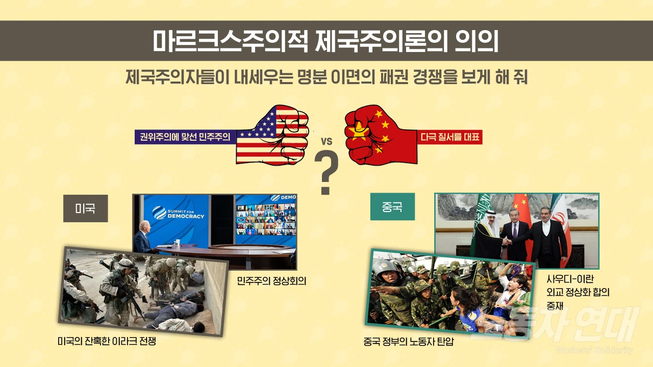 한미 정상회담을 앞두고 윤석열은 우크라이나 군사 지원 가능성 시사, 대만해협에 관한 발언으로 파문을 일으켰죠. 한미 정상회담에서는 이에 더해, 한국에 미국 핵무기를 배치하는 등 핵 위기를 증폭시킬 합의를 했습니다. 윤석열의 잇단 친미 외교 행보를 우려하는 목소리가 커지고 있습니다. 일각에서는 국익이나 안보를 잣대로 윤석열 외교를 비판합니다. 과연 윤석열 외교의 핵심 문제는 무엇일까요? 그의 행보가 어떤 모순과 위험을 키울지 마르크스주의 관점에서 살펴보려 합니다.