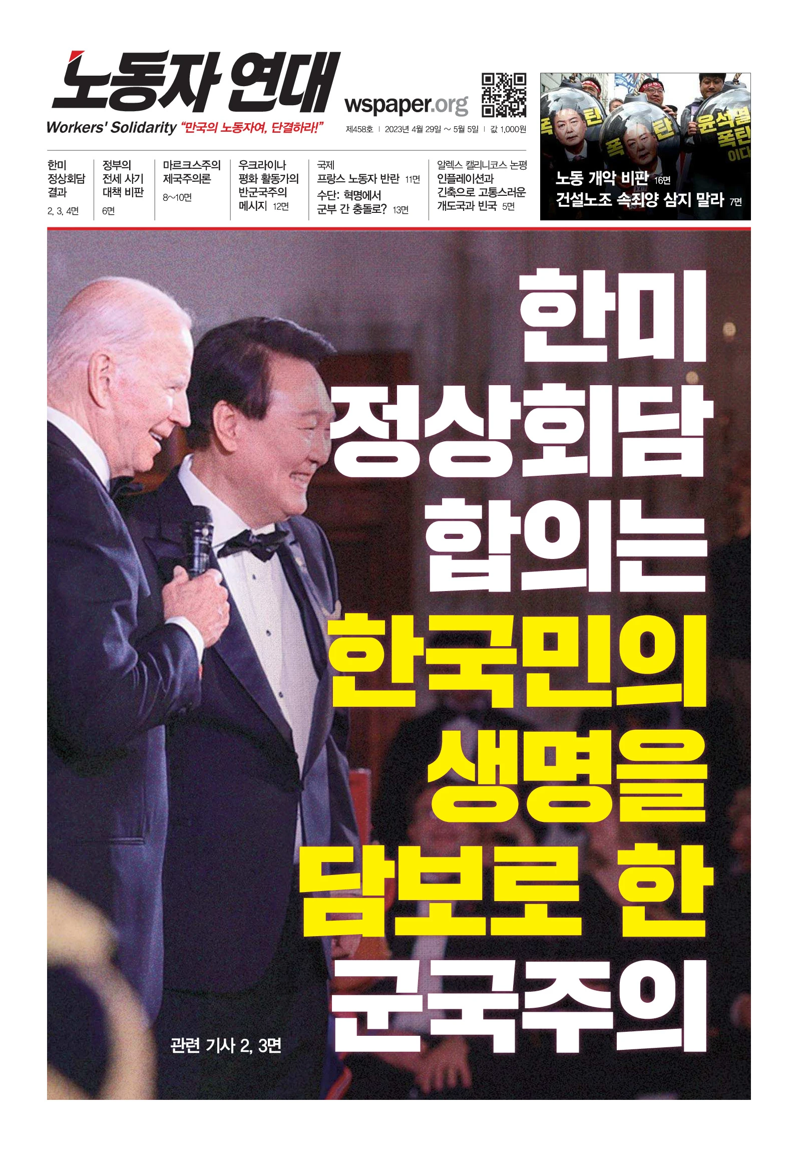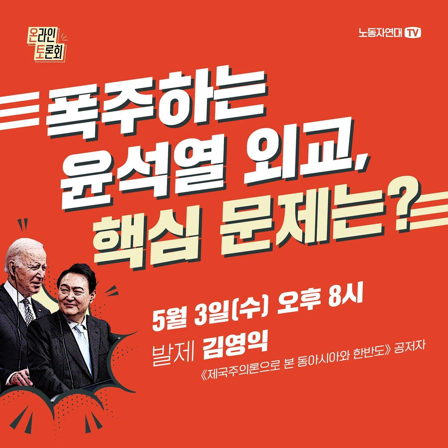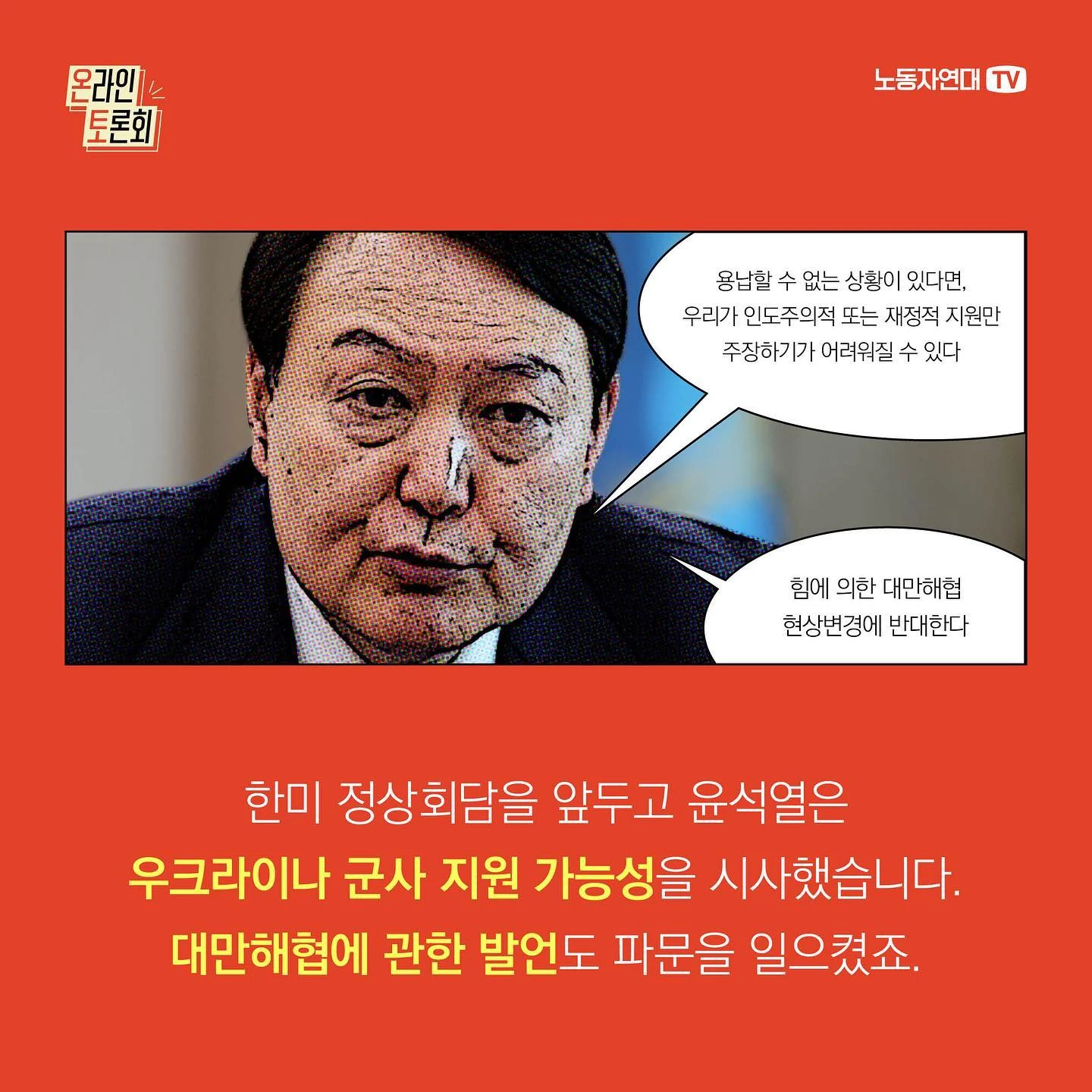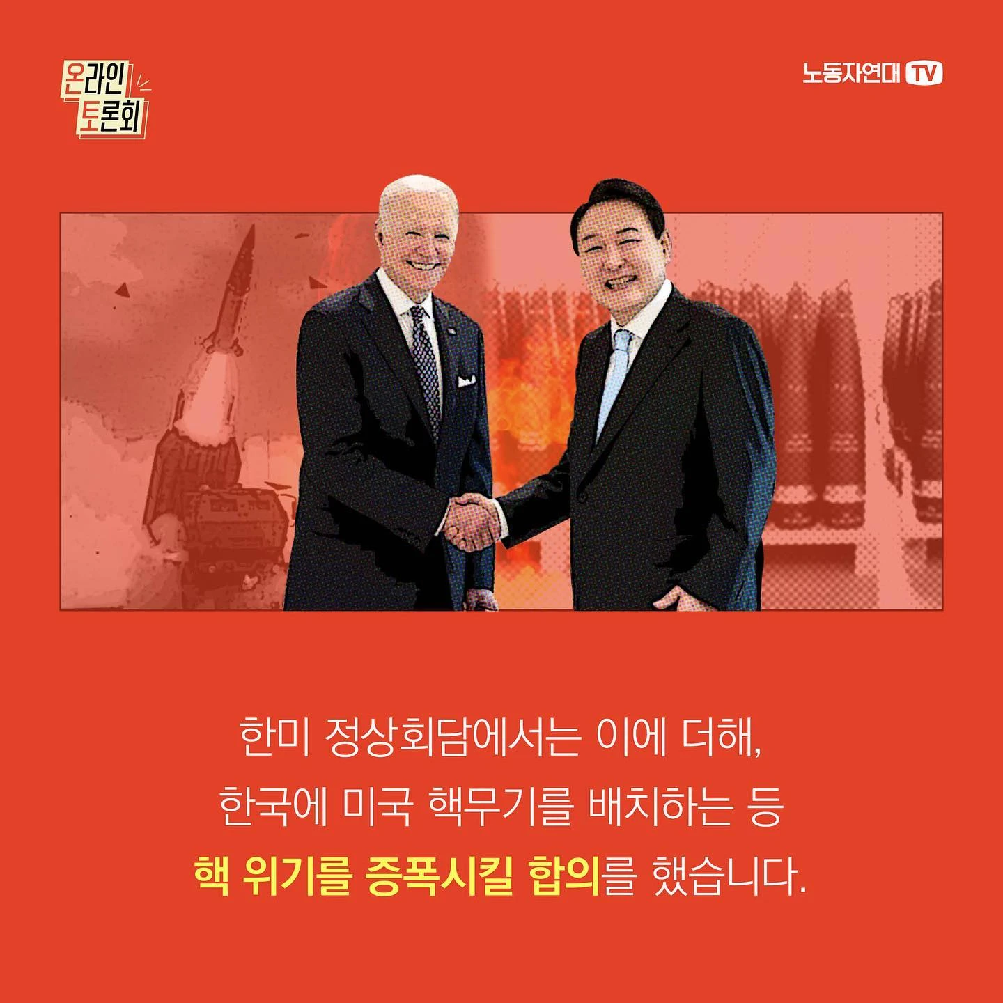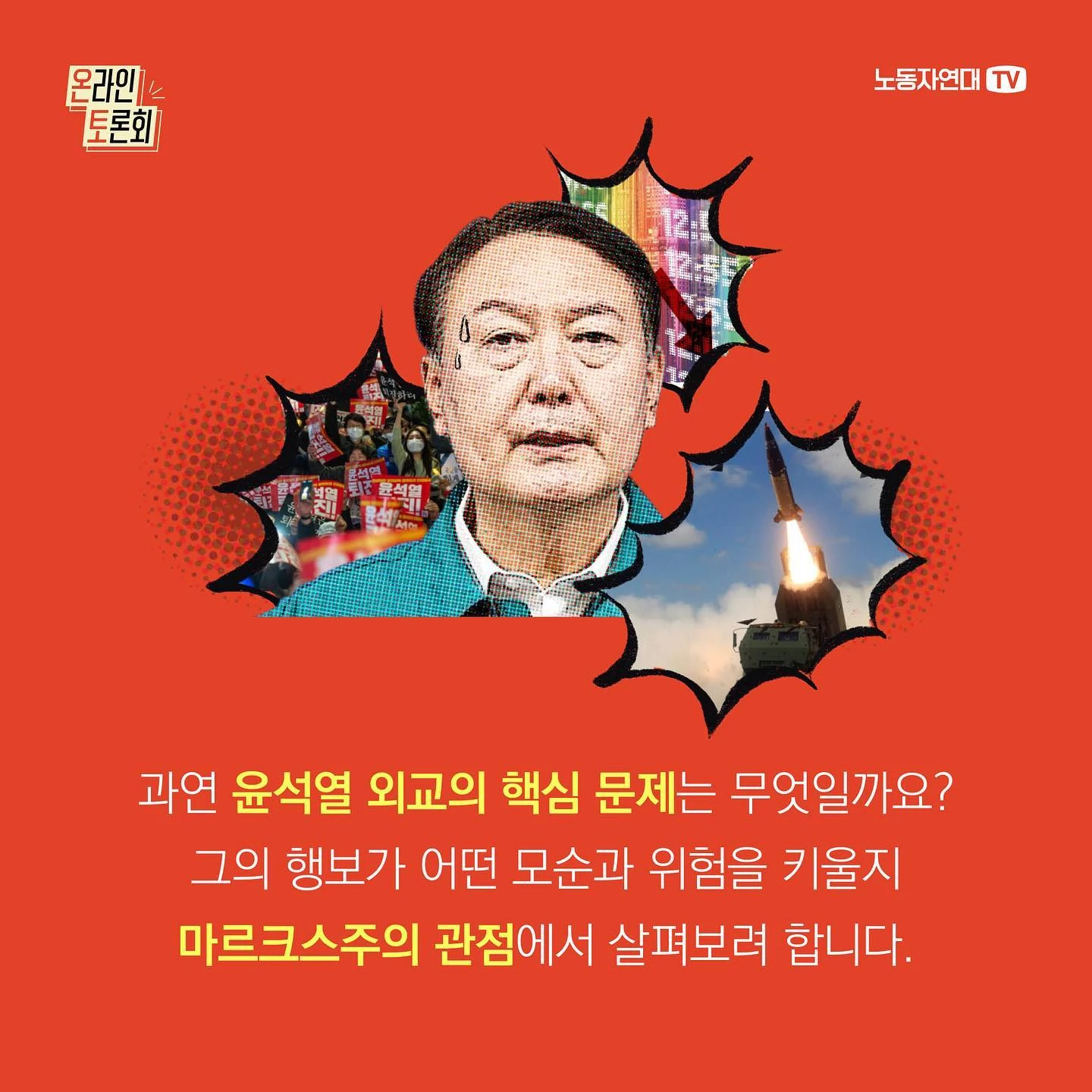 한미 정상회담을 앞두고 윤석열은 우크라이나 군사 지원 가능성 시사, 대만해협에 관한 발언으로 파문을 일으켰죠. 한미 정상회담에서는 이에 더해, 한국에 미국 핵무기를 배치하는 등 핵 위기를 증폭시킬 합의를 했습니다. 윤석열의 잇단 친미 외교 행보를 우려하는 목소리가 커지고 있습니다. 일각에서는 국익이나 안보를 잣대로 윤석열 외교를 비판합니다. 과연 윤석열 외교의 핵심 문제는 무엇일까요? 그의 행보가 어떤 모순과 위험을 키울지 마르크스주의 관점에서 살펴보려 합니다.