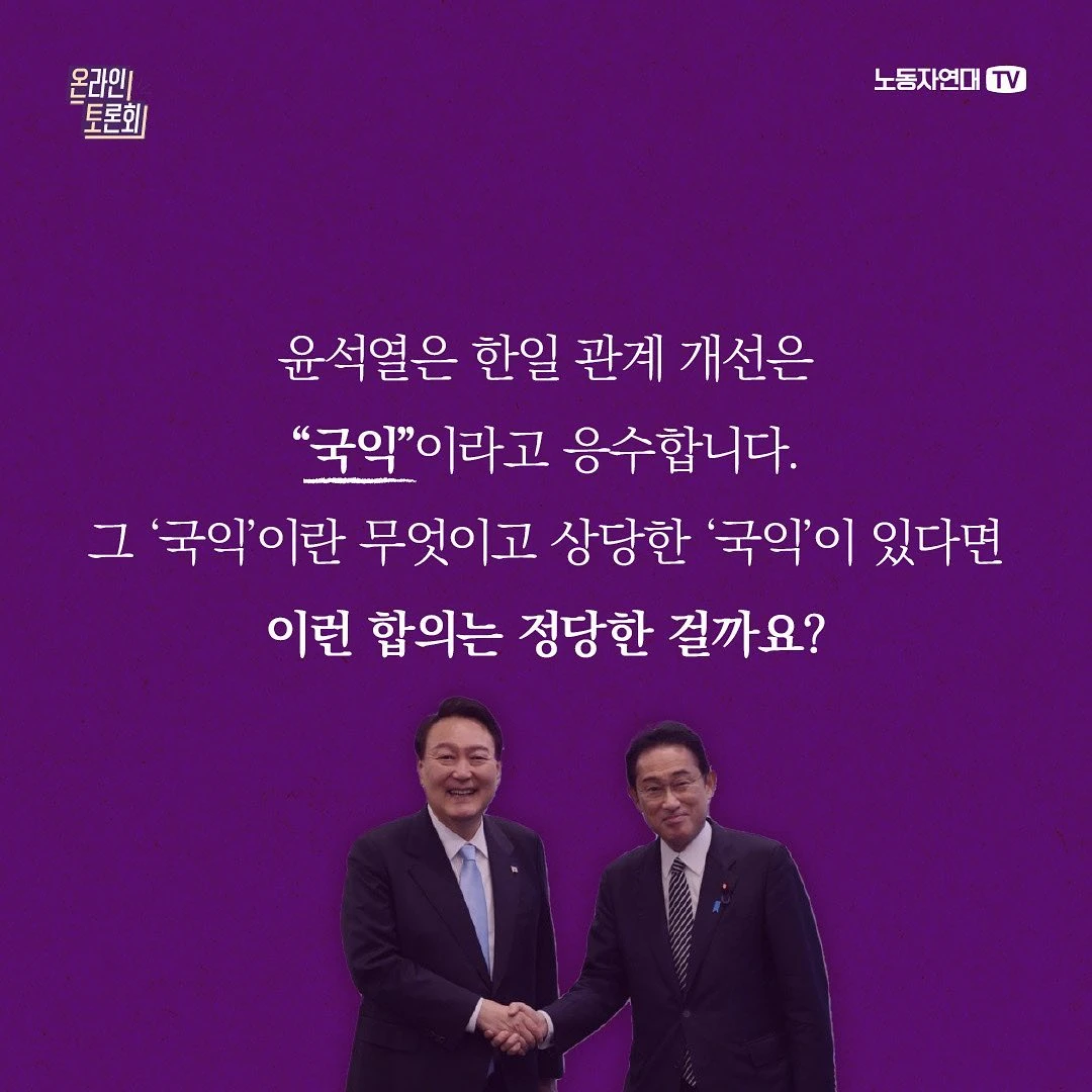 윤석열 정부가 일본의 강제동원 피해 배상 책임을 면제해 준 것에 분노가 큽니다. 민주당은 “굴욕 외교”라고 비판하고 많은 좌파들도 그렇게 주장합니다. 윤석열은 한일 관계 개선은 “국익”이라고 응수합니다. 그 ‘국익’이란 무엇이고 상당한 ‘국익’이 있다면 이런 합의는 정당한 걸까요? 역대 민주당 정부하에서도 과거사 문제는 별 진전이 없었습니다. 과거사 문제는 왜 이토록 해결되지 않는 걸까요? 한일 관계의 역사와 쟁점을 국제주의 관점에서 살펴보려 합니다.