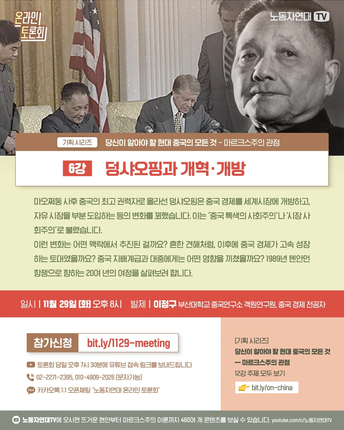 마오쩌둥 사후 중국의 최고 권력자로 올라선 덩샤오핑은 중국 경제를 세계시장에 개방하고 자유시장을 부분 도입하는 등의 변화를 꾀했습니다. 이는 ‘중국 특색의 사회주의’나 ‘시장 사회주의’로 불렸습니다. 이런 변화는 어떤 맥락에서 추진될 걸까요? 흔한 견해처럼, 이후에 중국 경제가 고속 성장하는 토대였을까요? 중국 지배계급과 대중에게는 어떤 영향을 끼쳤을까요? 1989년 톈안먼 항쟁으로 향하는 20여 년의 여정을 살펴보려 합니다.