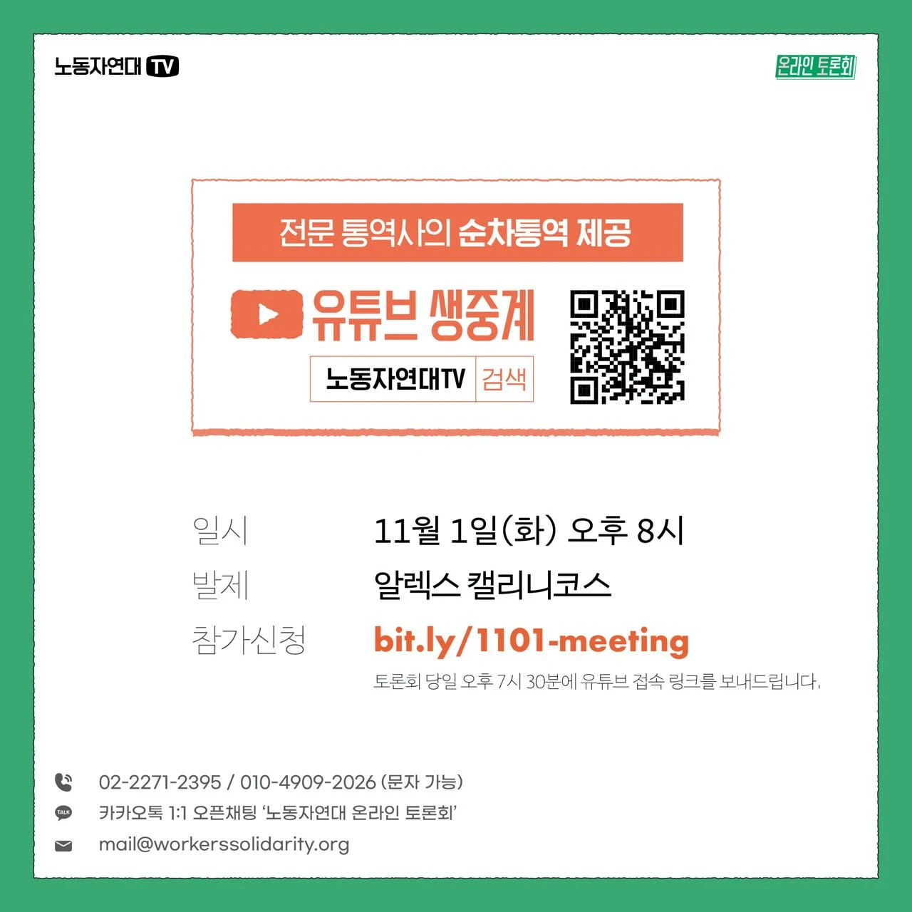 - 일시: 11월 1일(화) 오후 8시 - 발제: 알렉스 캘리니코스