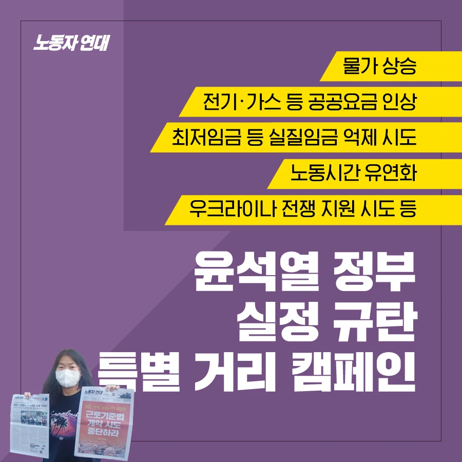 윤석열 정부가 물가 급등 상황에서 오히려 공공요금 인상, 임금 억제 등 경제 위기의 고통을 노동계급 대중에게 전가하는 정책들을 추진하고 있습니다. 이에 반대하는 목소리를 더 크게 내고자 더 많은 독자들과 만나는 특별 거리 판매 캠페인을 서울과 주요 도시에서 동시다발로 진행합니다. 많은 관심과 호응을 바랍니다.