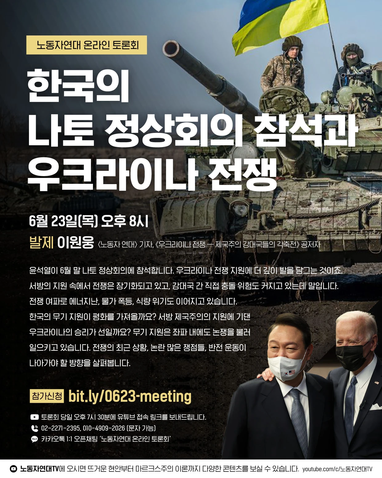 – 일시: 6월 23일(목) 오후 8시 – 발제: 이원웅 〈노동자 연대〉 기자, 《우크라이나 전쟁 — 제국주의 강대국들의 각축전》 공저자