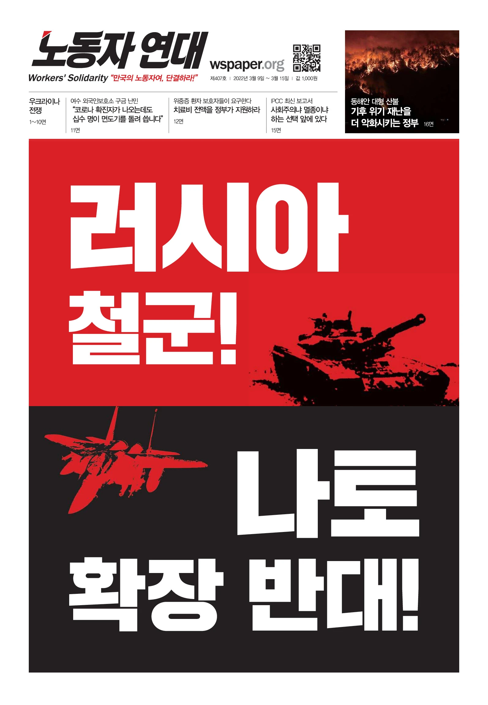 3월 6일 서울 종로타워 앞에서 ‘우크라이나 전쟁 중단! 서방과 한국 정부의 러시아 제재 반대! 국제 행동의 날’ 집회가 열렸습니다. 이 집회는 영국의 평화운동 단체 전쟁저지연합이 제안한 ‘우크라이나 전쟁 중단, 러시아군 철군, 나토 확장 반대 국제 공동 행동’의 일환이었습니다. 이날 러시아와 영국에서도 반전 시위가 벌어졌습니다. 전쟁에 반대하는 한국인과 외국인들 150여 명은 활력 있게 구호를 외치며 집회와 행진에 참가했습니다. 특히 이날 집회는 러시아와 미국·서방 제국주의 모두에 반대하고, 한국 정부의 제재 동참에 반대하는 목소리를 낸다는 점에서 큰 정치적 의미가 있는 집회였습니다. 코로나 등으로 집회에 부득이하게 참가 못한 분들도 생생한 영상으로 만나 보세요.