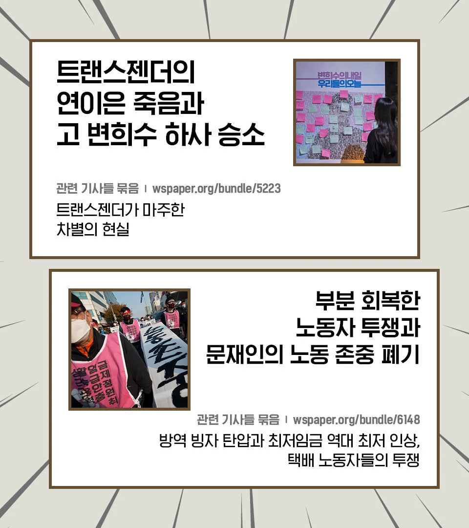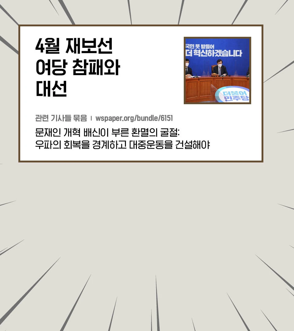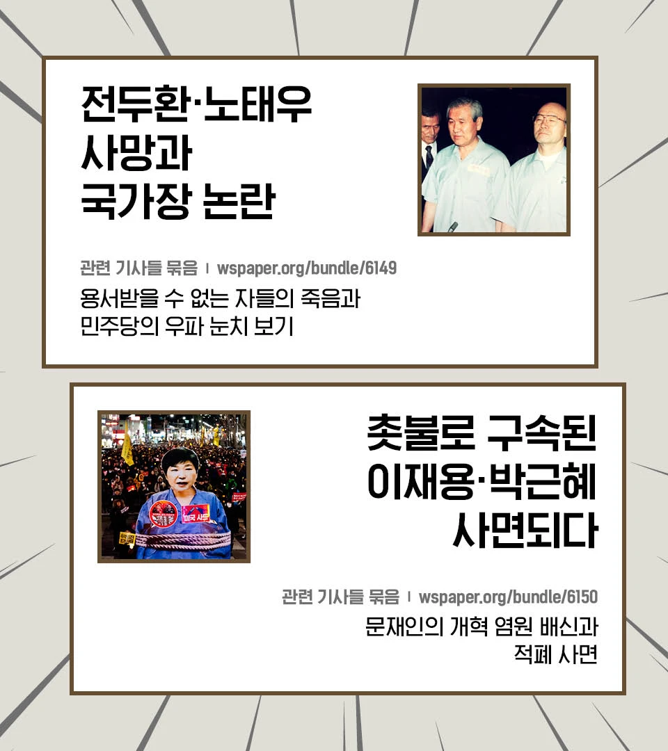 촛불 투쟁으로 퇴진∙구속된 박근혜가 4년 9개월 만에 사면됐습니다. 대중운동으로 우파 정권을 쫓아냈는데, 그 뒤 대중이 염원한 개혁은 이뤄지지 않고 우파가 되살아났습니다. 반면 좌파의 존재감은 미미합니다. 왜 이런 일이 벌어졌을까요? 촛불 투쟁과 문재인 정부 5년을 돌아보며 사회 변화를 바라는 사람들이 얻어야 할 교훈을 살펴보려 합니다.