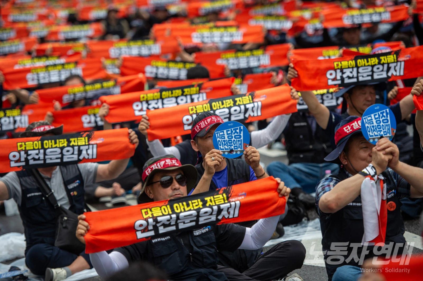 👉 화물연대 노동자들이 민주당의 안전운임제 후퇴에 항의하다