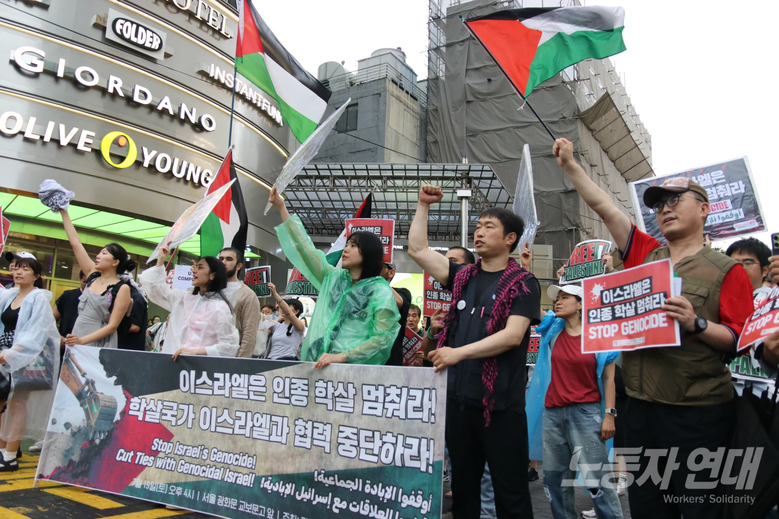 👉 팔레스타인인들과 연대를! 93차 서울 집회와 행진: 이스라엘의 인종학살에 협력하는 국내 대학과 기업들을 규탄하다