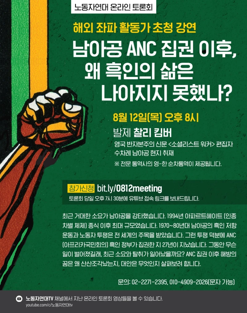최근 거대한 소요가 남아공을 강타했습니다. 1994년 아파르트헤이트(인종차별 체제) 종식 이후 최대 규모였습니다. 1970~80년대 남아공의 흑인 저항운동과 노동자 투쟁은 전 세계의 주목을 받았습니다. 그런 투쟁 덕분에 ANC(아프리카국민회의) 흑인 정부가 집권한 지 27년이 지났습니다. 그동안 무슨 일이 벌어졌길래, 최근 소요와 탈취가 일어났을까요? ANC 집권 이후 해방의 꿈은 왜 산산조각났는지, 대안은 무엇인지 살펴보려 합니다.