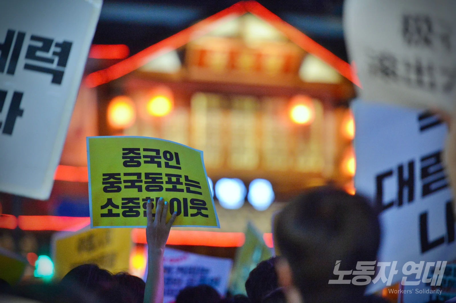 중국계 이주민과 중국 동포가 많이 거주하는 서울 대림동에서 극우가 중국인 혐오를 부추기고 윤석열을 지지하는 시위를 벌인다는 소식에 긴급하게 맞불 시위가 열렸습니다.