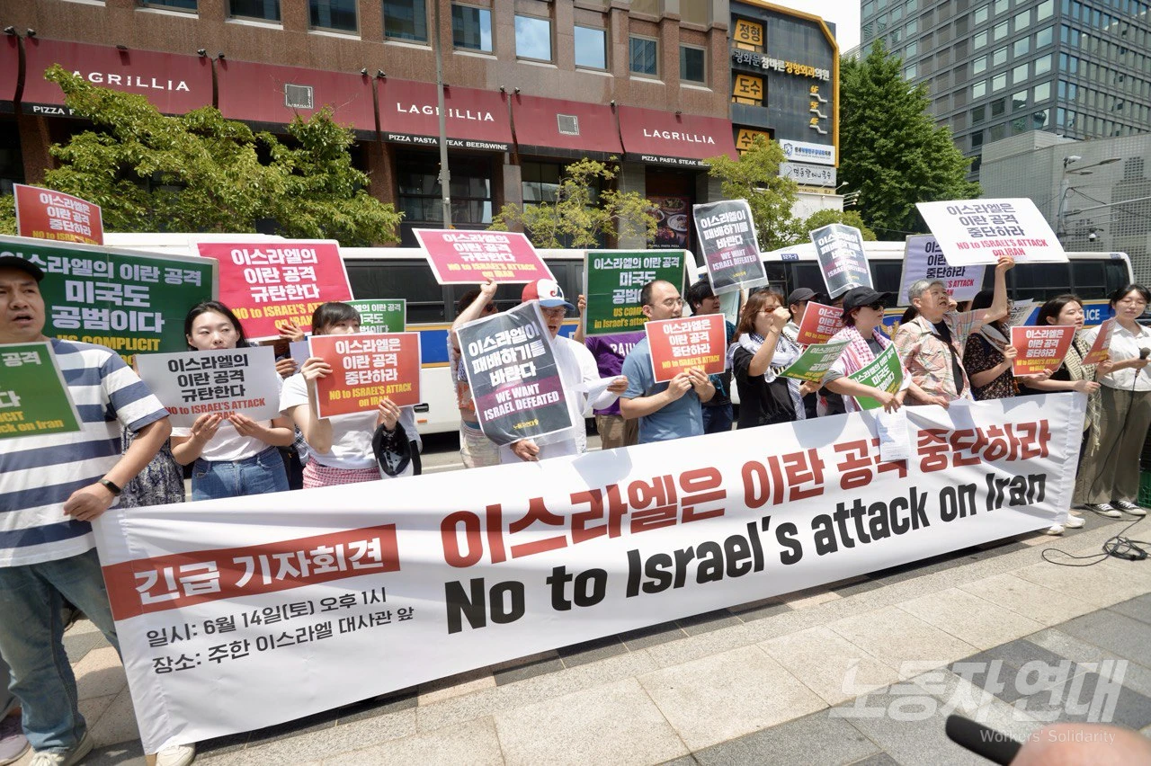 이스라엘의 이란 공격을 규탄하는 긴급 기자회견이 재한 이스라엘 대사관 앞에서 열렸습니다.