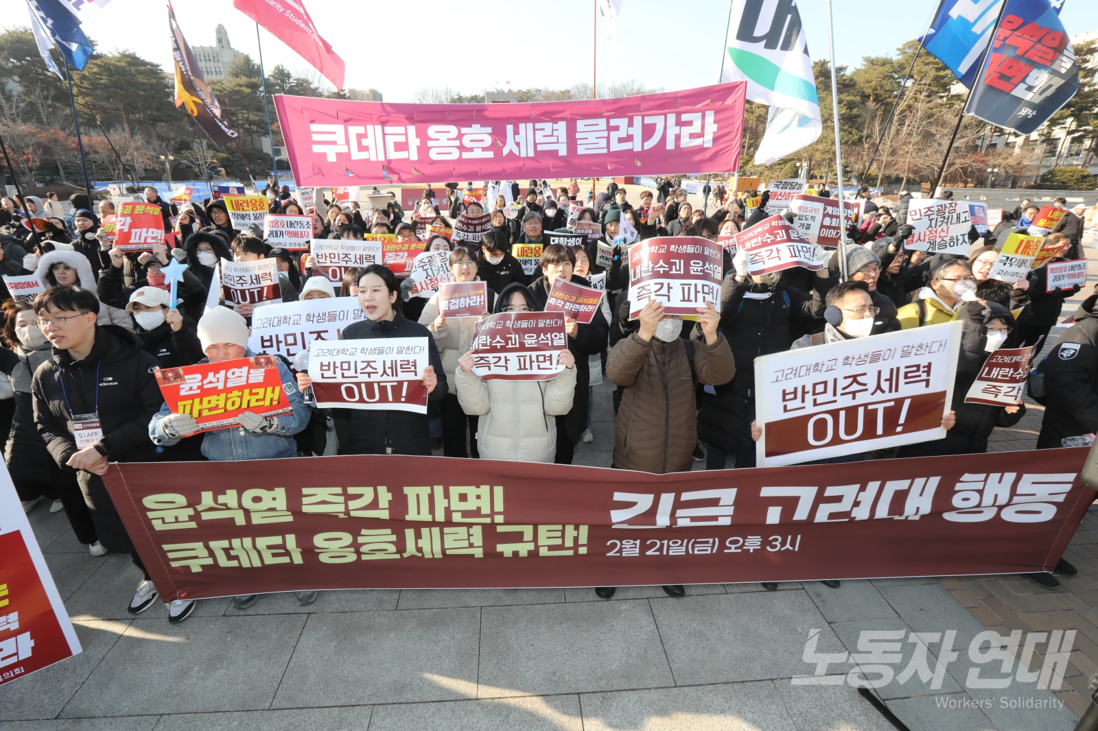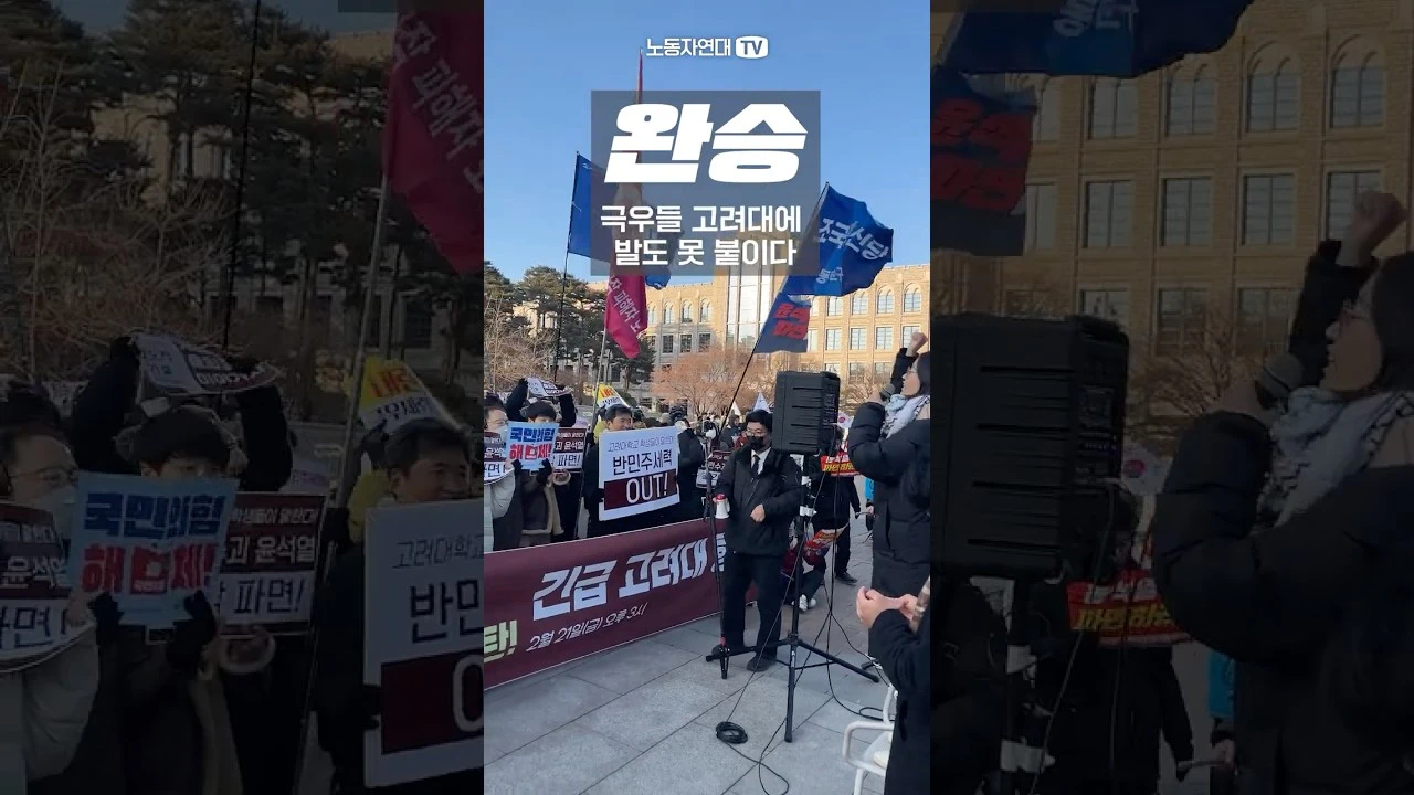 2월 25일 고려대에서 탄핵 찬성파의 큰 승리가 있었습니다. 쿠데타를 옹호하는 극우가 학교 안으로 들어오지도 못한 채로 탄핵 반대 시국선언이 완전히 실패한 것입니다.