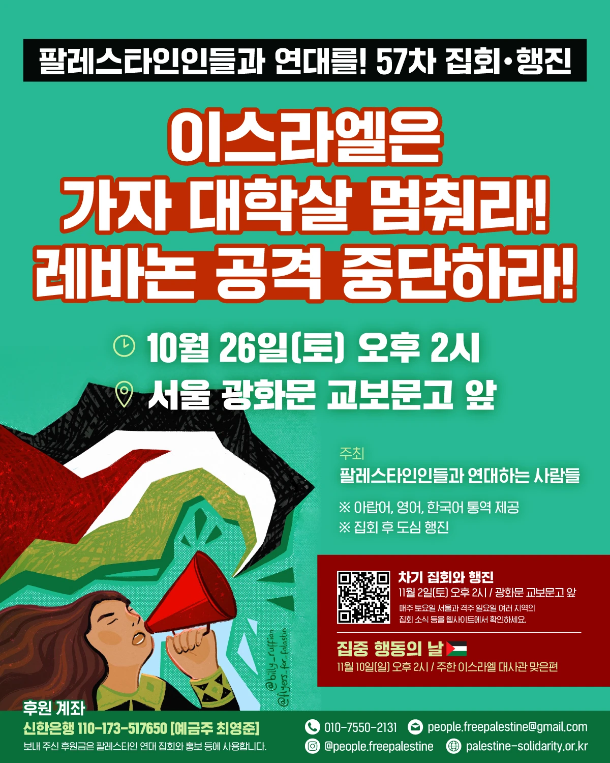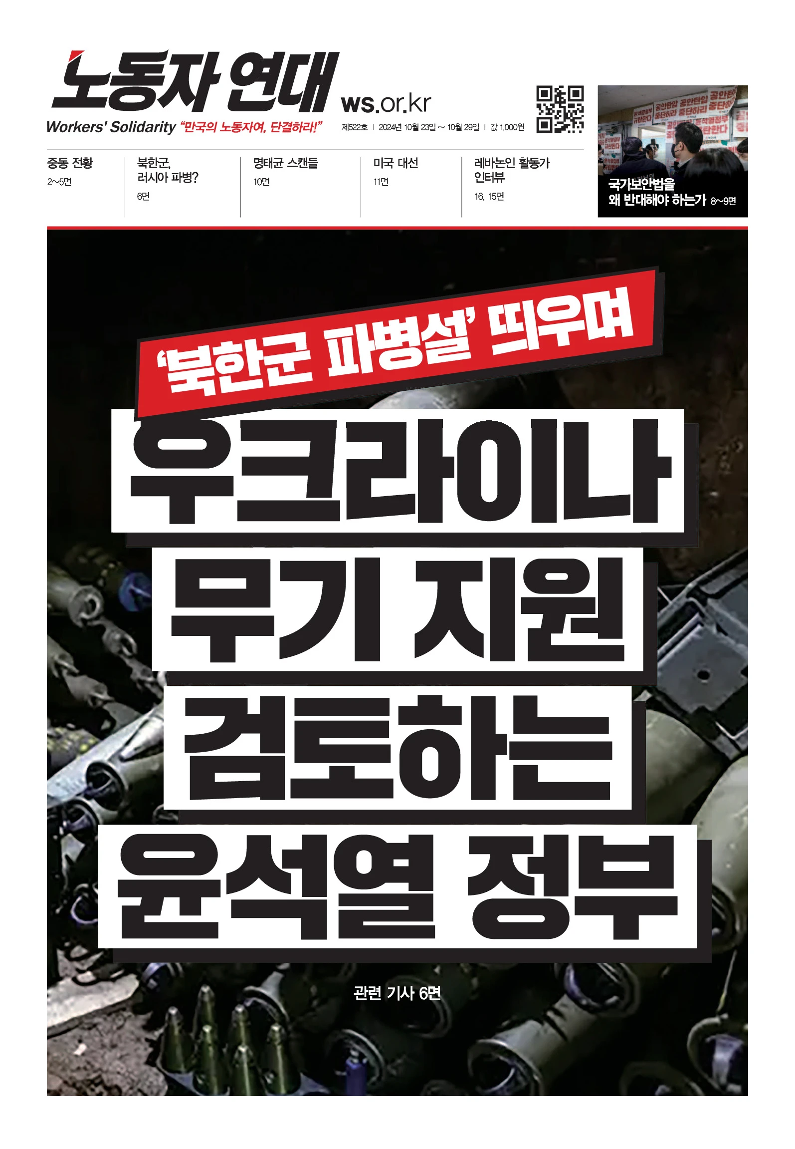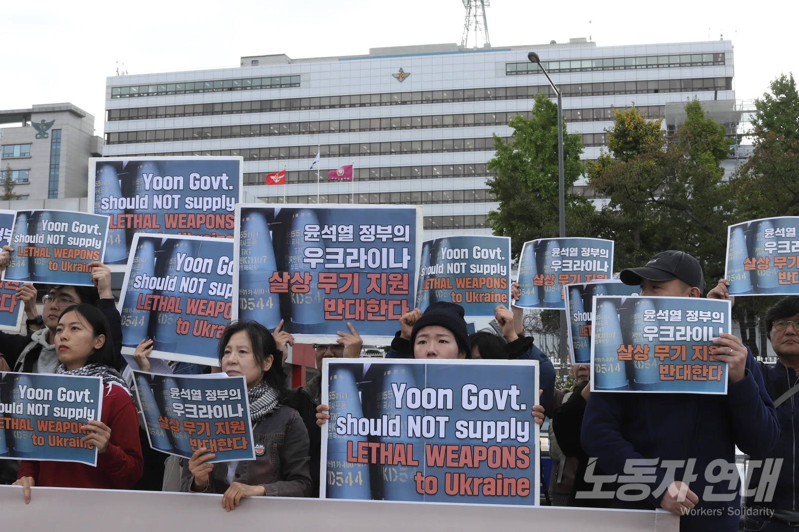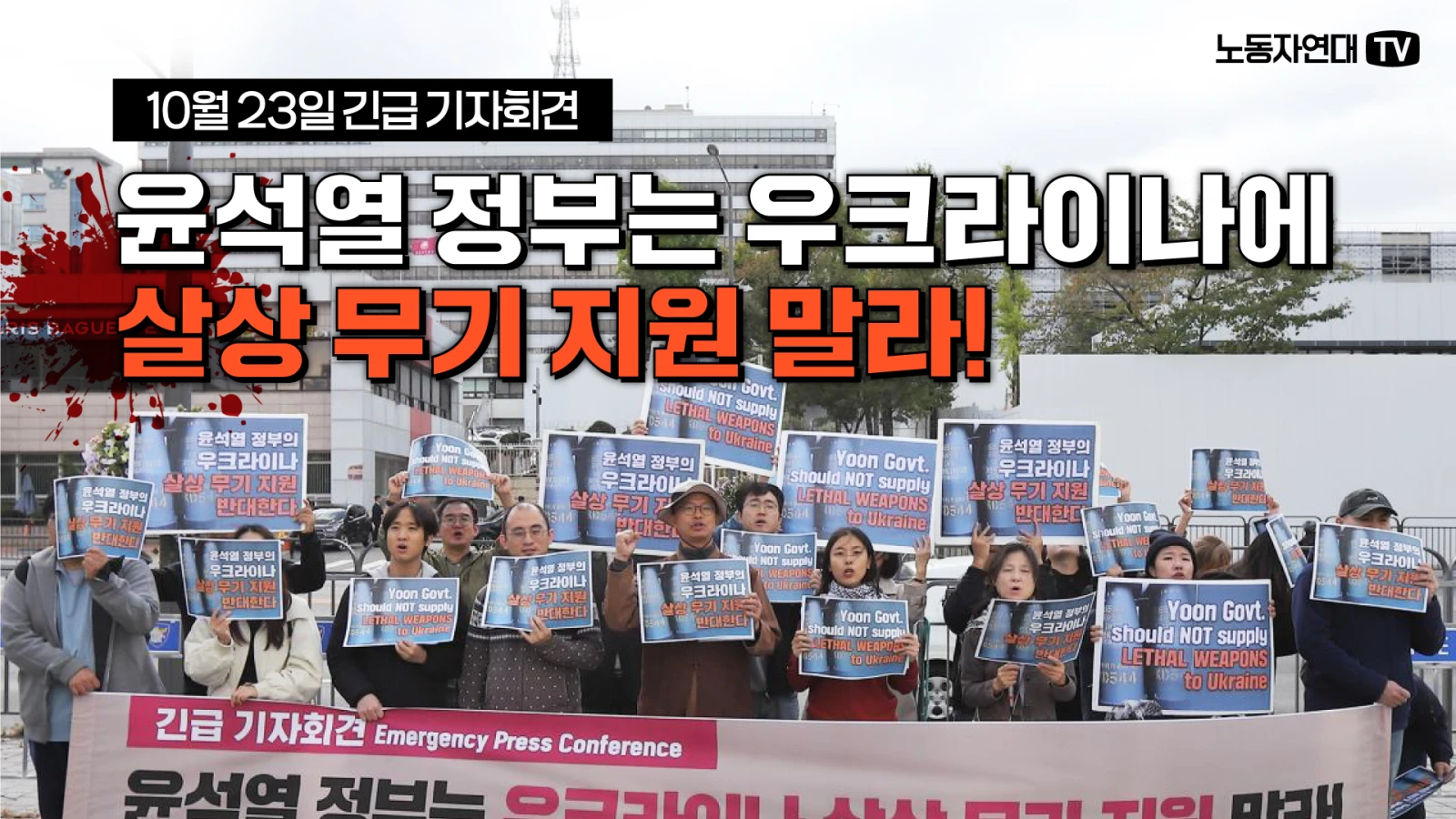 10월 23일, '윤석열 정부의 우크라이나 살상무기 지원 반대한다!' 긴급 기자회견이 국방부 앞에서 열렸습니다. 윤석열 정부는 확인되지도 않은 "북한군 러시아 파병설"을 띄우며, 우크라이나에 살상무기 지원을 검토하겠다고 밝혔습니다. 그간 윤석열 정부는 우회적으로 우크라이나에 무기를 지원했는데, 이제는 더 많은 무기를 직접 지원하겠다는 것입니다. 그러나 무기 지원은 전쟁을 지속시키고 비극만 키울 것입니다. 또한 한반도 위기를 악화시킬 수도 있습니다. 윤석열 정부는 미국 등 서방 대 러시아의 패권 경쟁과 전쟁 위기에 일조하는 우크라이나 무기 지원을 중단해야 합니다.