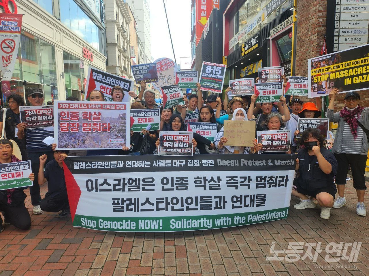 7월 28일 경기 북부의 중심지 의정부에서 팔레스타인 연대 집회와 행진이 열렸습니다. 연천, 양주, 포천, 의정부 등지에서 모인 내국인과 여러 국적의 이주민 100여 명은 이스라엘의 만행과 미국의 지원을 규탄했습니다. 그리고 ‘팔레스타인인들과 연대하는 사람들’이 여는 8월 15일 전국 집중 행동에 모이자고 했습니다.전국 곳곳으로 뻗어 가는 팔레스타인 연대 운동을 영상으로 만나 보세요.