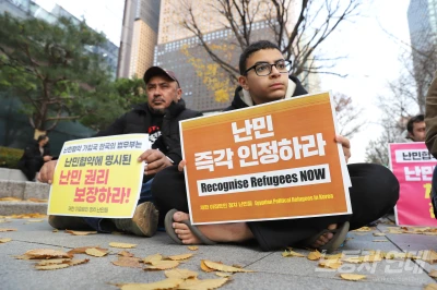 11월 30일 일요일 오후 2시 서울 광화문 교보문고 앞에서 난민들과 그들에 연대하는 사람들의 집회와 행진이 열렸다. 이날 집회는 33년 전 한국 정부가 유엔 난민협약에 가입한 날인 12월 3일을 앞두고 열렸다. 12월 3일은 친민주주의 대중의 힘으로 윤석열의 쿠데타 시도를 저지한 지 1년이 되는 날이기도 하다. 집회를 주최한 29명의 ‘재한 이집트인 정…